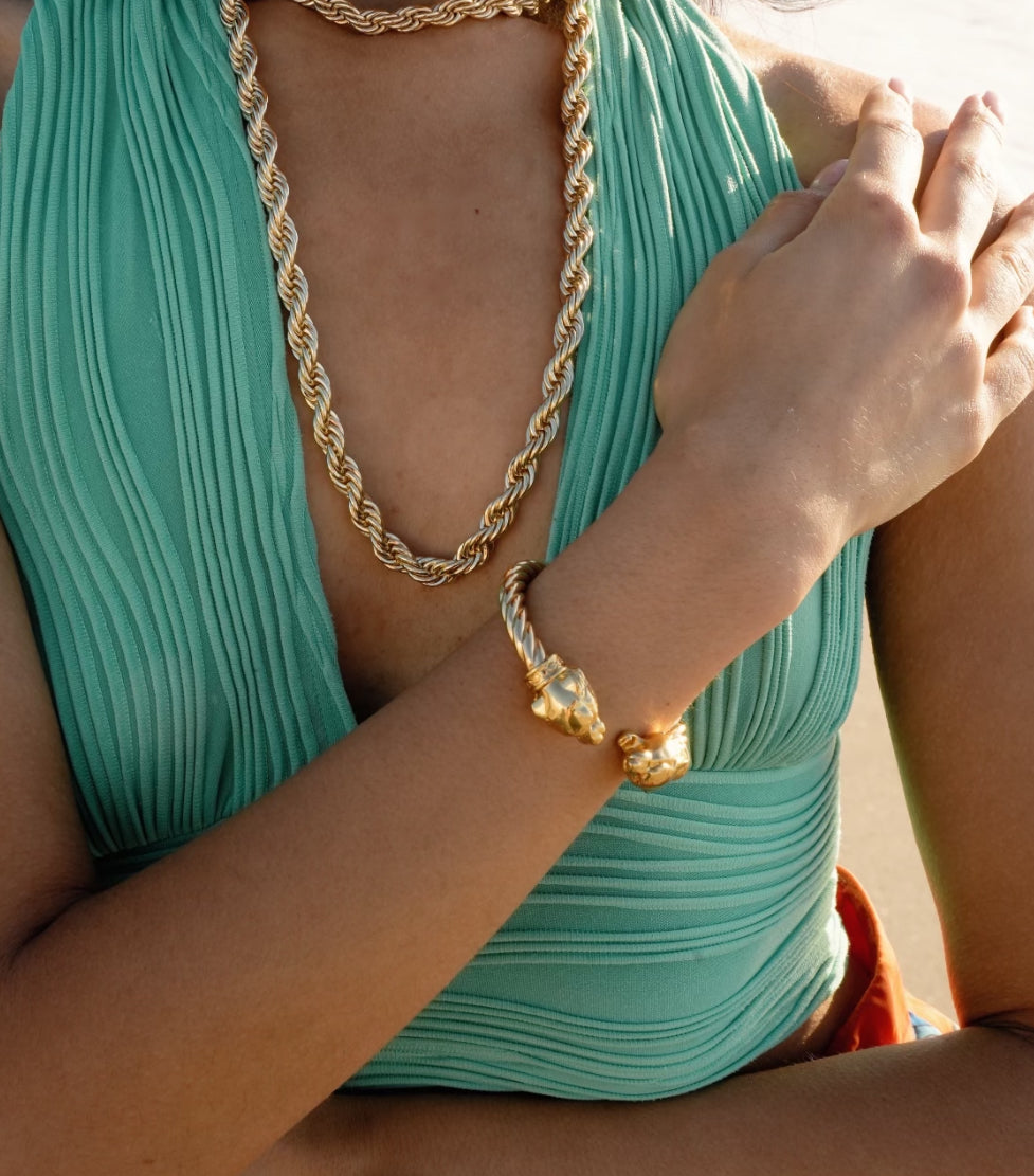 Crafted with 18kt gold fill, the Jaguar Cuff Bracelet adds a touch of luxury to any outfit. The sturdy yet elegant design makes it perfect for daily wear and its high-quality materials ensure long-lasting beauty. Elevate your style with this timeless piece that exudes sophistication and class.